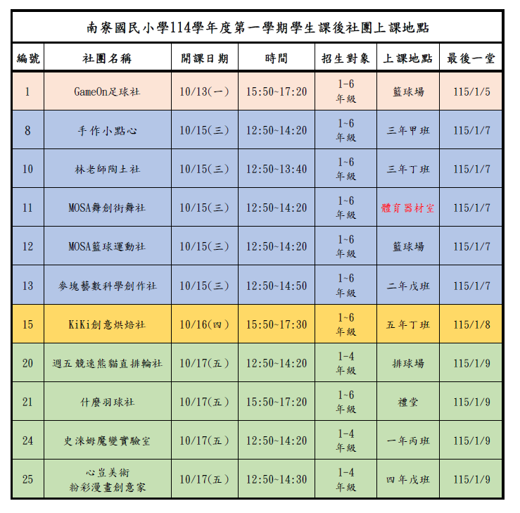 各位家長好:社團開課結果公告如下,已錄取的孩子們將會在聯絡簿收到開課通知單!另也已將各位孩子報名結果告知班級導師!