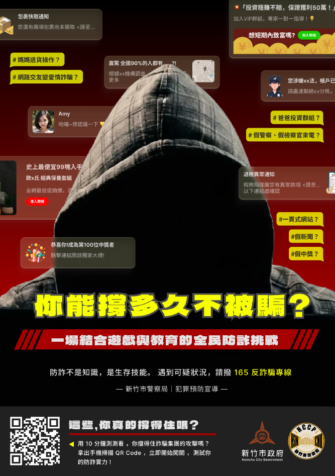 | 一、 | 鑑於詐騙犯罪手法日益多元,民眾(青年學子)易成為詐騙集團鎖定對象,該局配合中央反詐政策,運用數位科技及互動式學習模式,規劃「AR反詐互動式闖關遊戲」,透過情境式關卡強化民眾識詐、防詐能力。 |